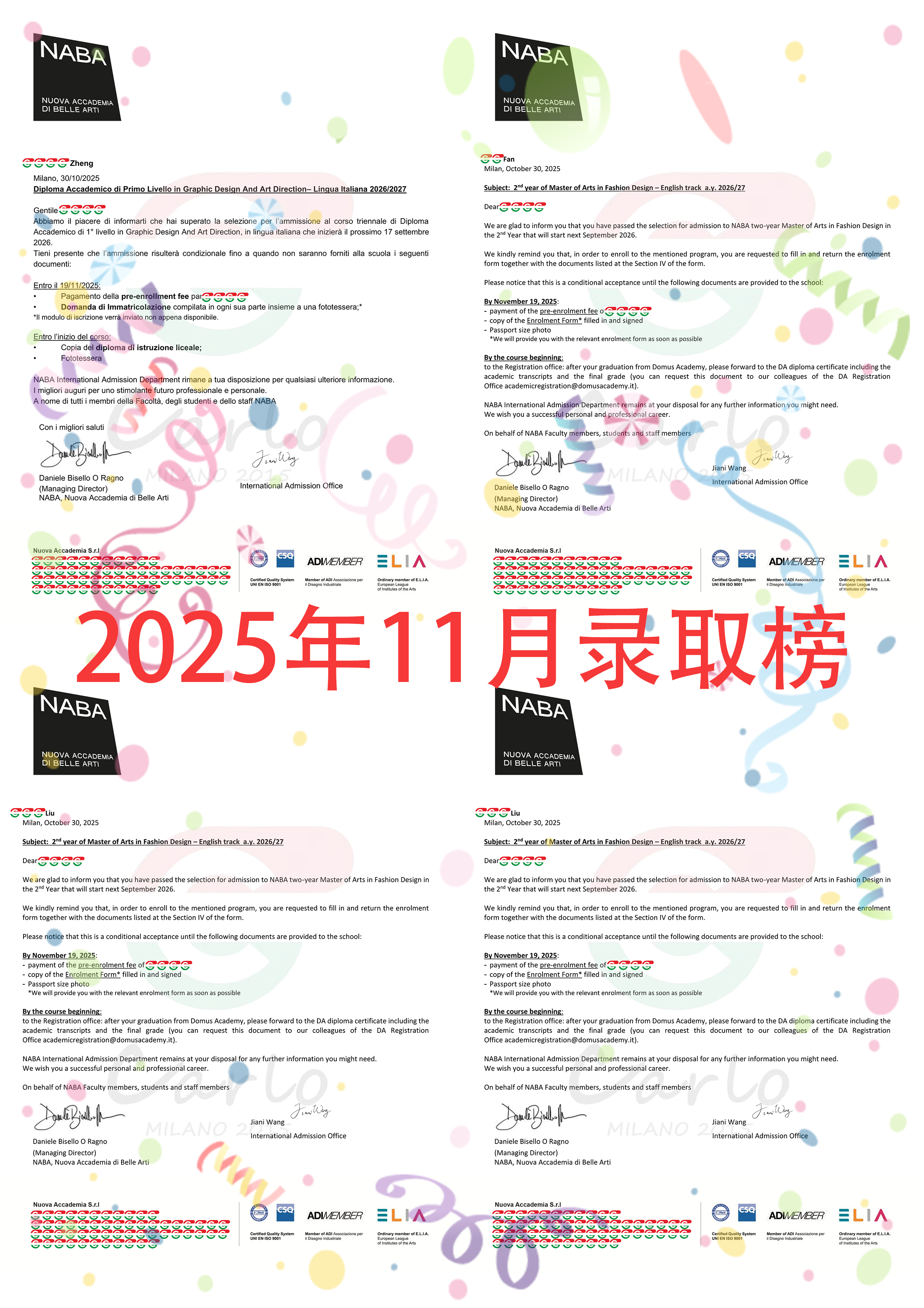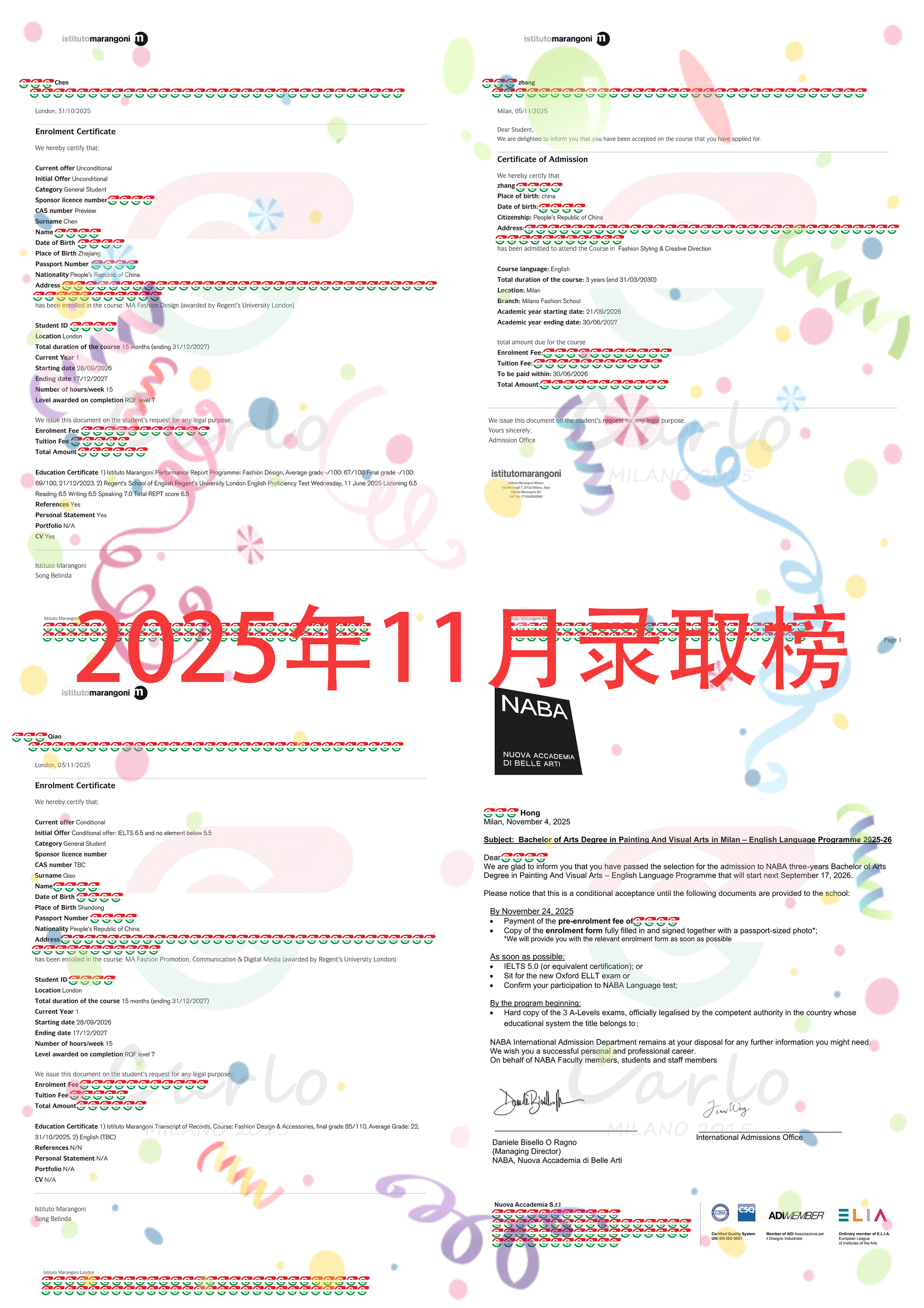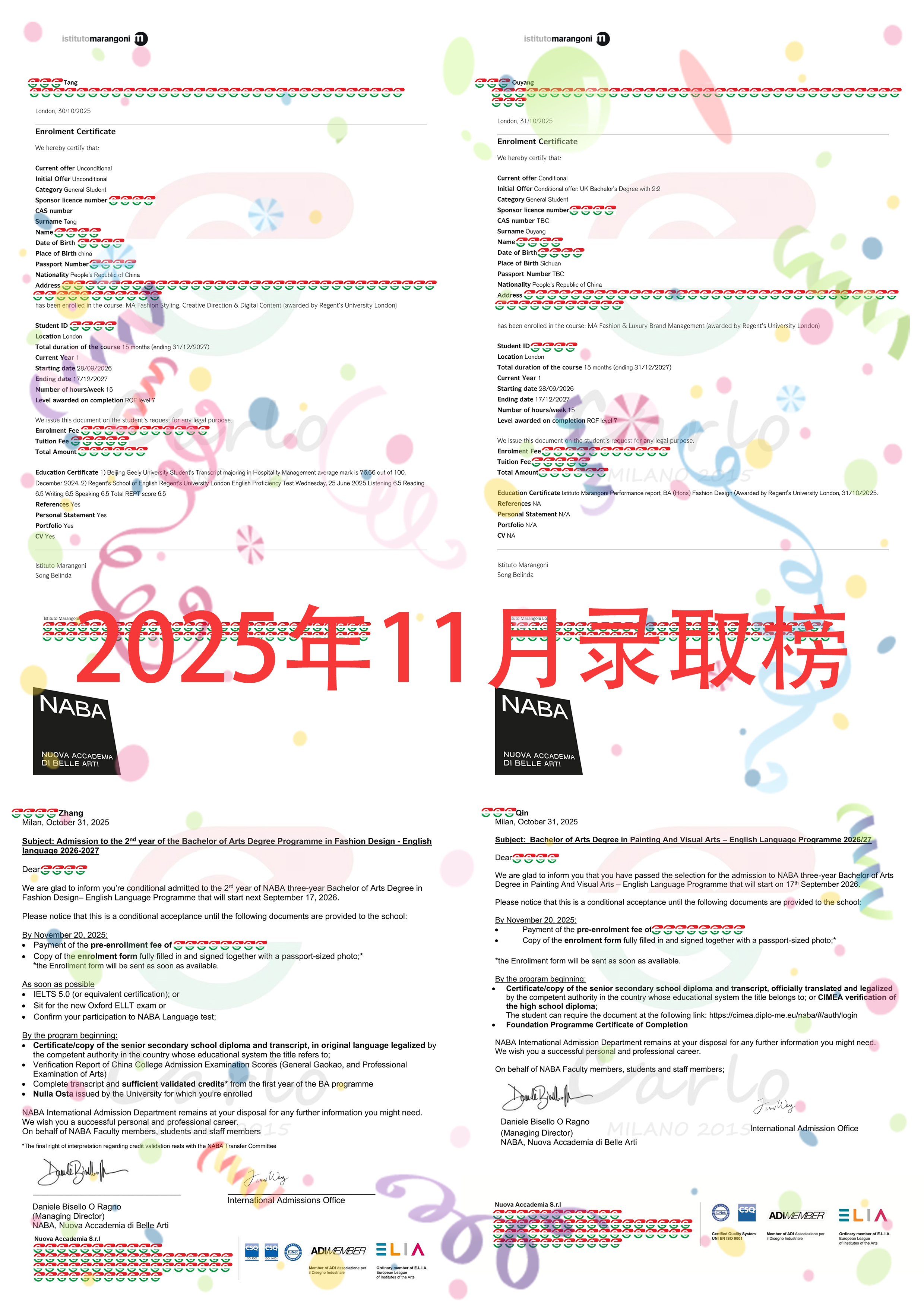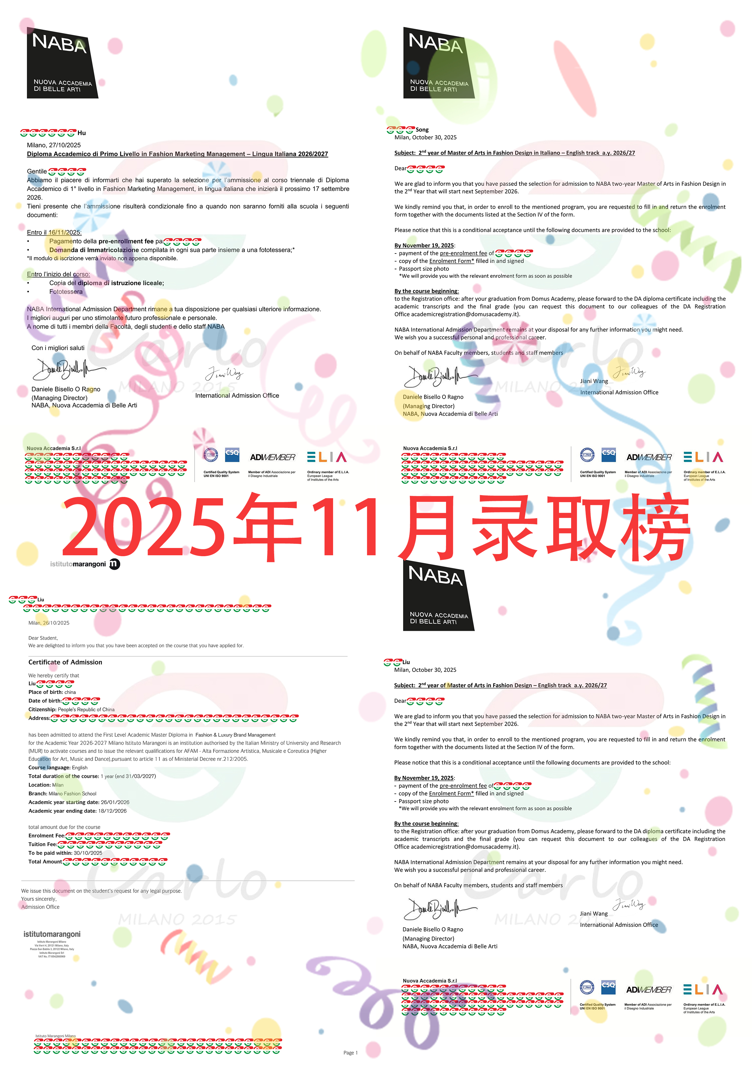恭喜20位同学拿到 istituto Marangoni,NABA, 的录取!